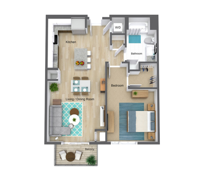 1 bathView PricingOne bedroom, one bathroom, featuring luxury finishes, open-concept living space and kitchen with a separate bedroom sanctuary, in-home laundry.